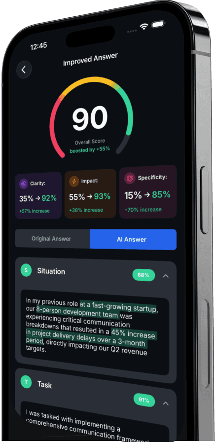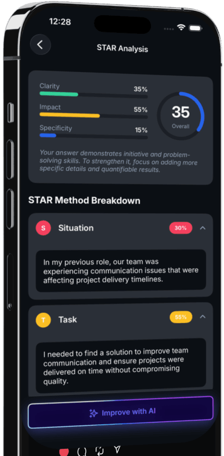 Practice real answers, get instant AI-powered feedback, and improve every response before the interview.